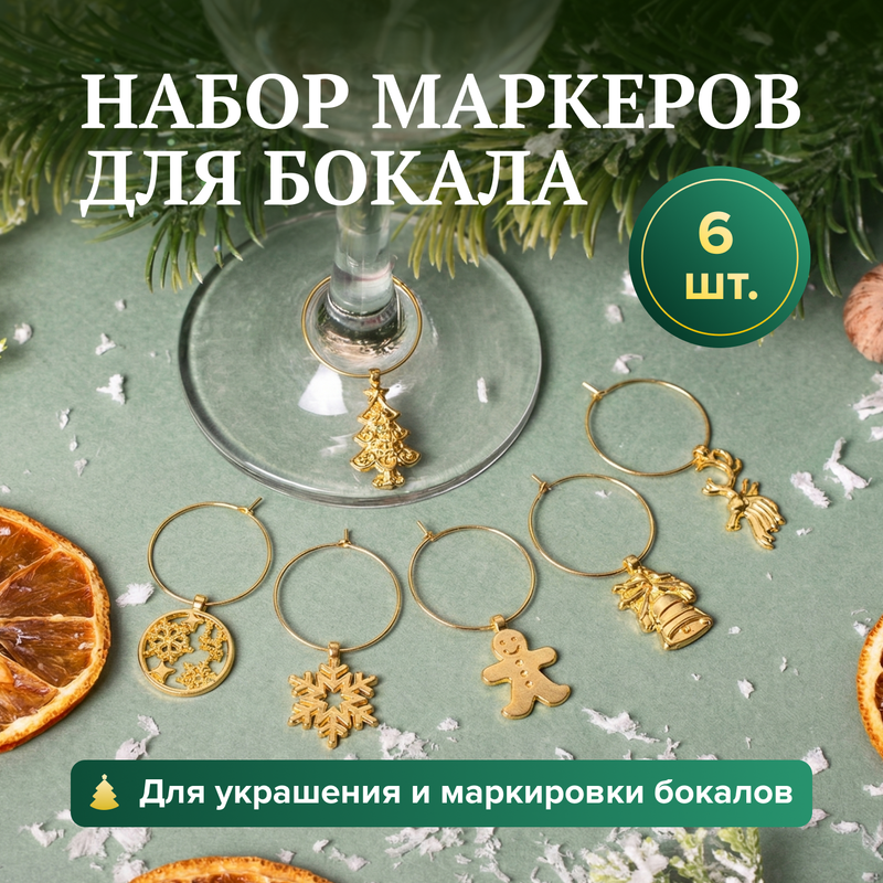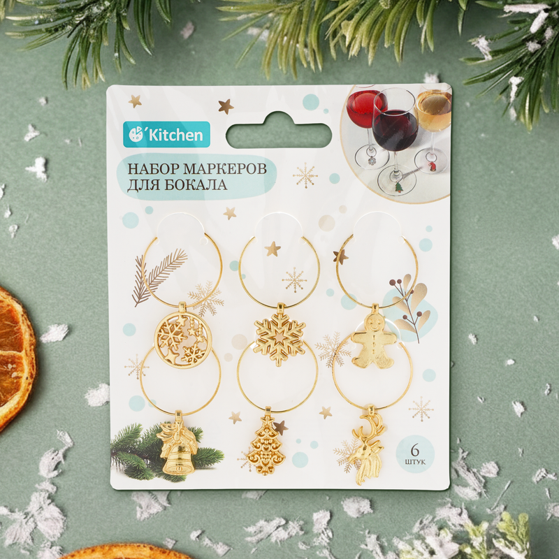 Набор маркеров для бокала, O'Kitchen – изящное решение для украшения и маркировки бокалов. В упаковке 6 маркеров. Каждый маркер украшен фигуркой на новогоднюю тематику. Состав: оцинкованная сталь, нержавеющая сталь. Товар представлен в ассортименте.