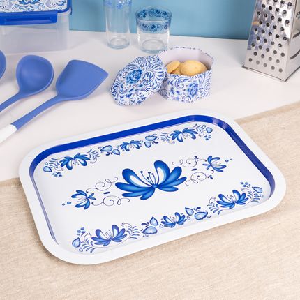 Арт. 5024822Поднос, O’Kitchen, поможет красиво подать завтрак или десерты. Украшен узором в синей палитре, в духе народного декоративного искусства. Размер: 40×28,5 см. Состав: жесть. Товар представлен в ассортименте. Коллекция товаров для кухни «Акварель» — узоры, которые рассказывают сказку!