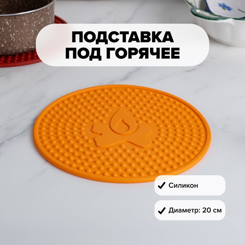 Подставка под горячее, O'Kitchen — практичный аксессуар для кухни. Защищает поверхность стола от высоких температур. Диаметр: 20 см. Состав: силикон. Товар представлен в ассортименте.