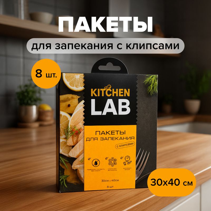 Пакеты для запекания "Kitchen Lab", с клипсами, 30х40 см, 8 шт.
