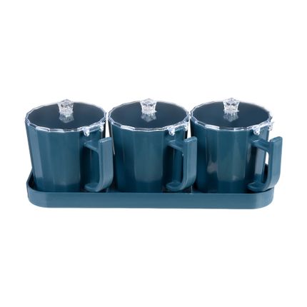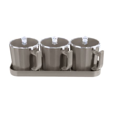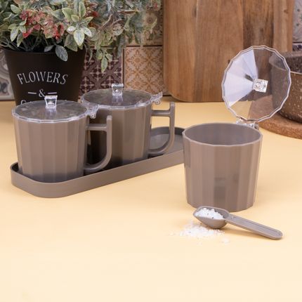 Арт. 5036465Набор банок на подставке, O'Kitchen – удобный вариант для организации хранения специй и других продуктов. В наборе 3 банки с прозрачными крышками и мерными ложками. Все банки расположены на аккуратной подставка. Объём банки: 250 мл. Размеры: банка – 8х6,7х8,5 см; ложка – 8,5х2,3 см; подставка – 24х8х1,7 см. Состав: полипропилен, силикон. Товар представлен в ассортименте.