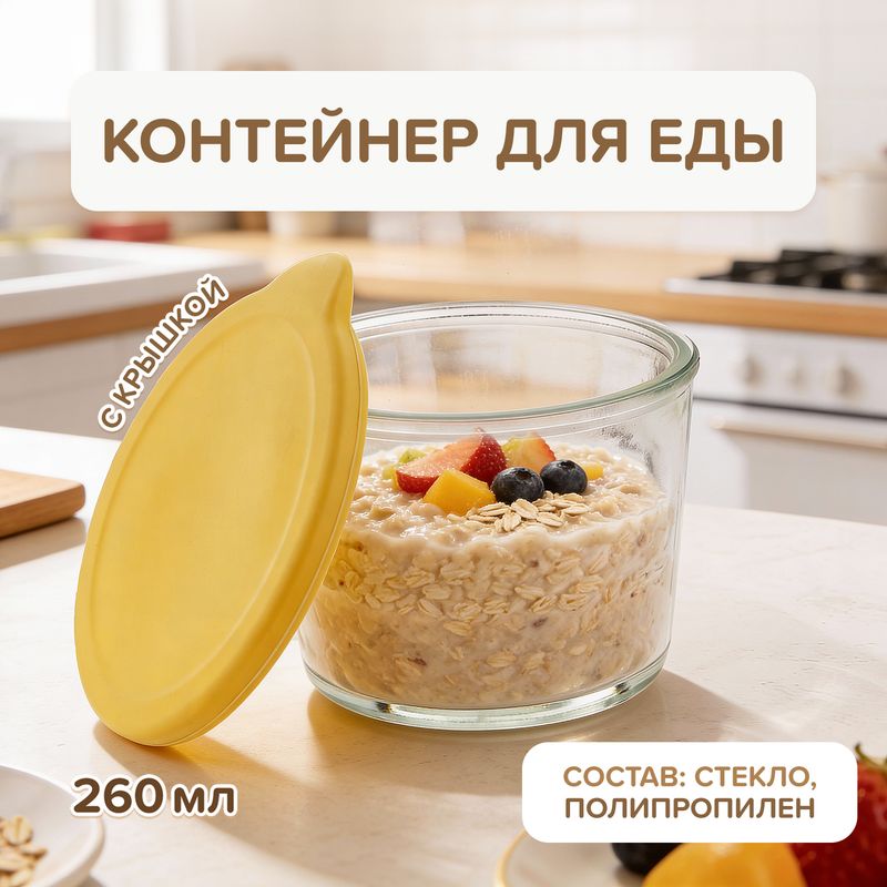 Контейнер для еды, O'Kitchen, удобен для хранения продуктов и готовых блюд. Оснащён крышкой. Выдерживает температуру от 0 °С до +90 °С. Объём: 260 мл. Состав: стекло, полипропилен. Товар представлен в ассортименте.