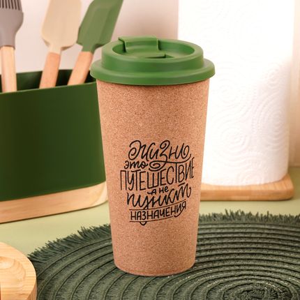 Арт. 5036638Стакан для напитков – отличный выбор для тех, кто всегда в движении! Удобный формат позволяет брать его с собой на работу, прогулку или в дорогу. Стакан украшен надписью, которая будет поднимать настроение! Крышка плотно закрывается при помощи клапана и защищает от проливаний. Выдерживает температуру от -20 до +100 °С. Объём: 500 мл. Размер: 9,5х6,4х18,8 см. Состав: полипропилен, пробка, ТПЭ, силикон. Товар представлен в ассортименте. Добавьте Вашей кухне натуральных оттенков с коллекцией посуды "Палитра природы"!