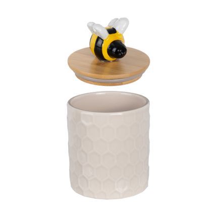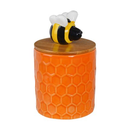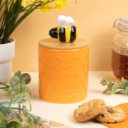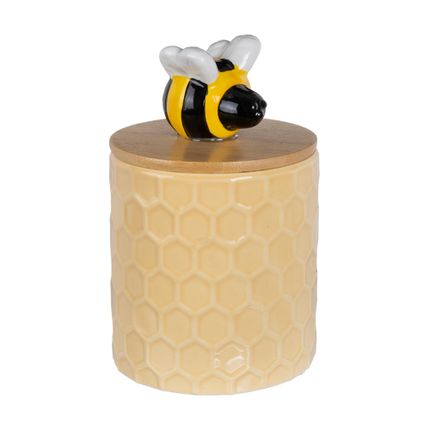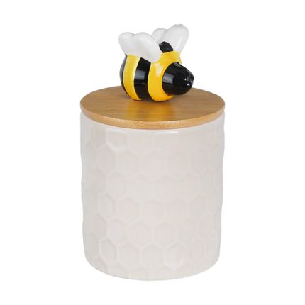Арт. 5036658Банка, O'Kitchen, в летнем дизайне пригодится для хранения сыпучих продуктов, конфет, сухофруктов или орехов. Декорирована рельефным узором в виде сот. Дополнена бамбуковой крышкой с фигуркой пчёлки. Объём: 620 мл. Размер: 10,5х16,5 см. Состав: керамика, бамбук. Нельзя мыть в посудомоечной машине. Товар представлен в ассортименте. Добавьте Вашей кухне уюта с коллекцией аксессуаров "Мёд&Молоко"!