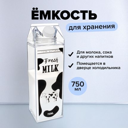 Арт. 5036687Ёмкость для хранения, O'Kitchen – удобный и оригинальный вариант для хранения молока, сока и других напитков. Также подходит для сыпучих продуктов. Ёмкость прямоугольной формы выполнена из прозрачного пластика и украшена лаконичными изображениями. Отлично помещается в дверце холодильника. Выдерживает температуру от -20 до +60 °С. Объём: 750 мл. Размер: 6,6х23,5 см. Состав: полистирол, полипропилен, силикон. Товар представлен в ассортименте.