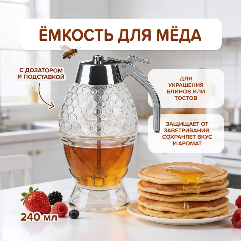 Ёмкость для мёда с дозатором и подставкой, O'Kitchen, 240 мл