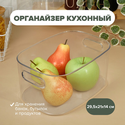 Арт. 5036808Органайзер кухонный, O’Kitchen, поможет аккуратно разместить банки, бутылки, овощи и кухонные аксессуары. Подходит для хранения на столешнице, в шкафах или на полках. Простая форма и нейтральный дизайн легко впишутся в интерьер кухни. Размер: 29,5х21х14 см. Состав: ПЭТФ. Также Вы можете приобрести органайзер кухонный (ЛК: 5036807) размером 24х16,5х12 см. Эстетика Вашей кухни в коллекции «Минимализм&Уют»!