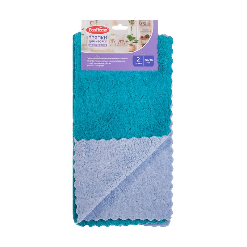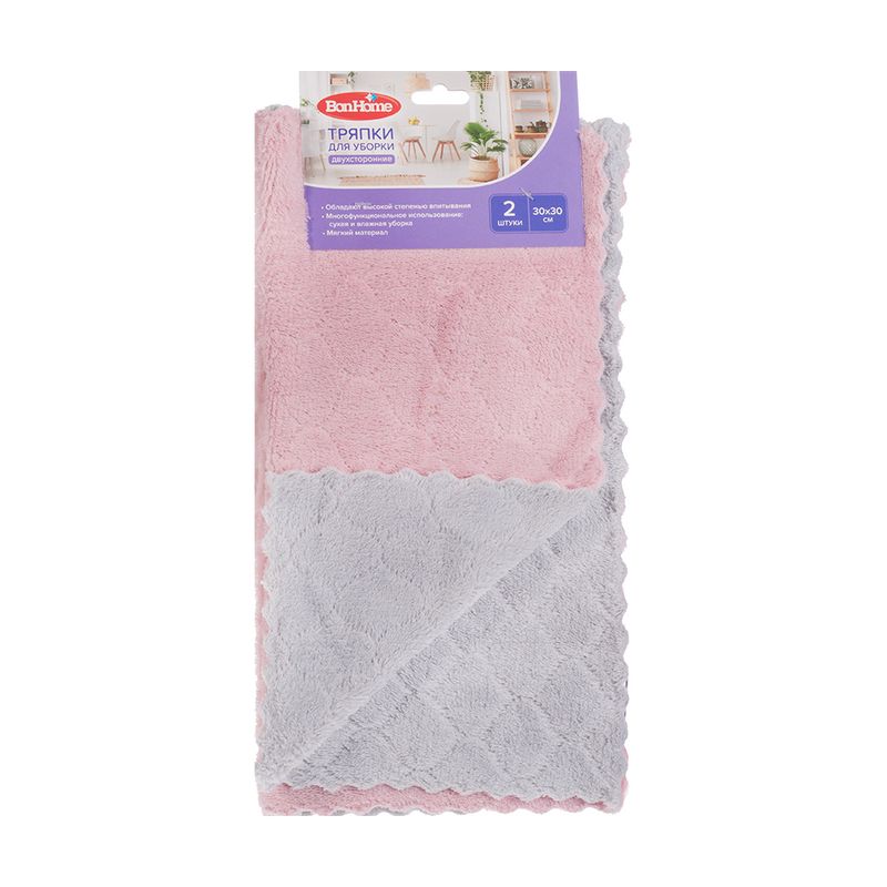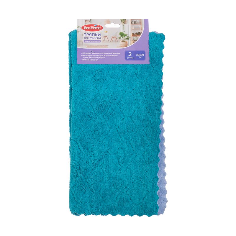 Тряпки для уборки двусторонние, BonHome, 30х30 см, 2 шт., в ассортименте