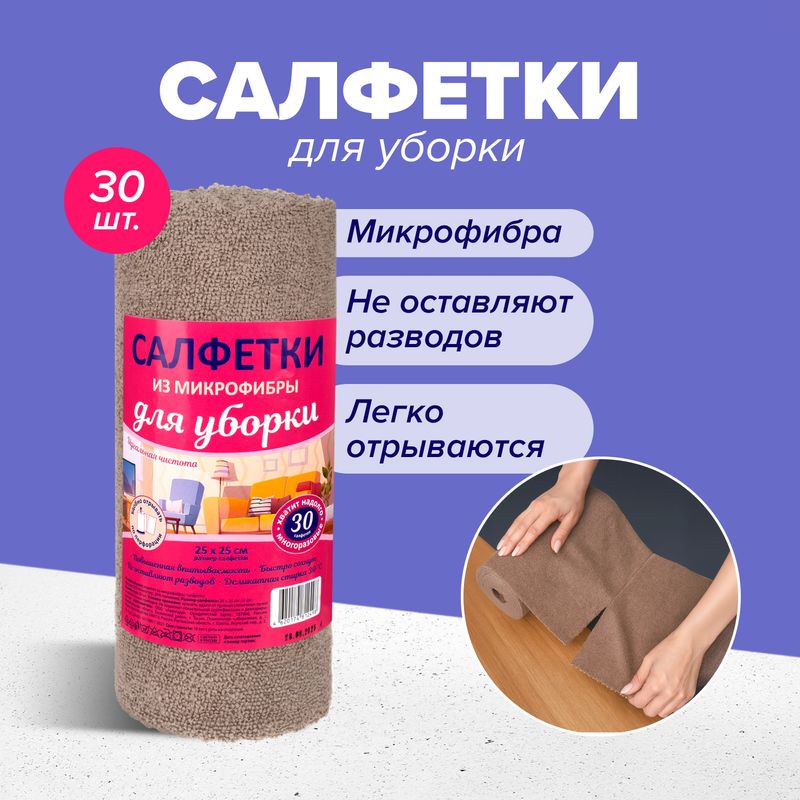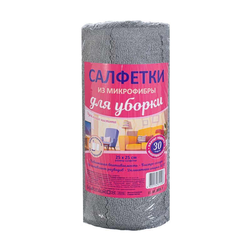 Салфетки из микрофибры для уборки, 25х25 см, 30 шт.