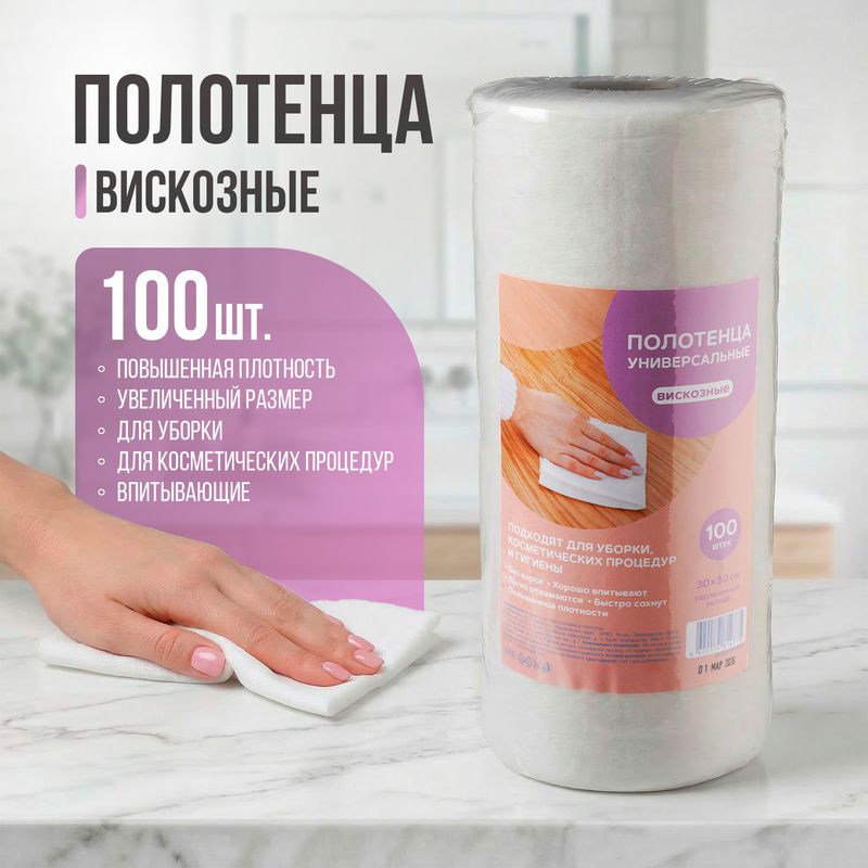 Полотенца вискозные — практичный вариант для уборки и ухода. Обладают повышенной плотностью, хорошо впитывают влагу и подходят также для косметических процедур. В упаковке 100 полотенец. Состав: нетканый материал.