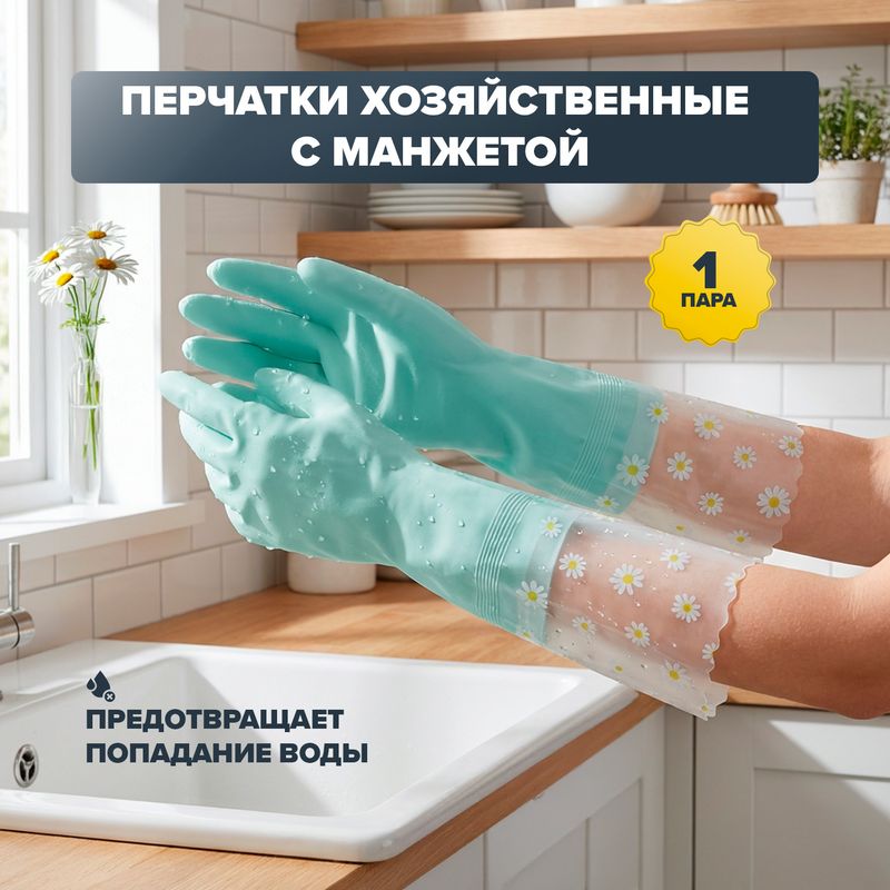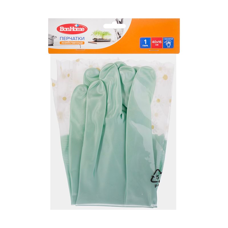 Перчатки хозяйственные с манжетой, BonHome, защитят руки при уборке, мытье посуды и работе с бытовой химией. Удобная удлинённая манжета предотвращает попадание воды на кожу и одежду.