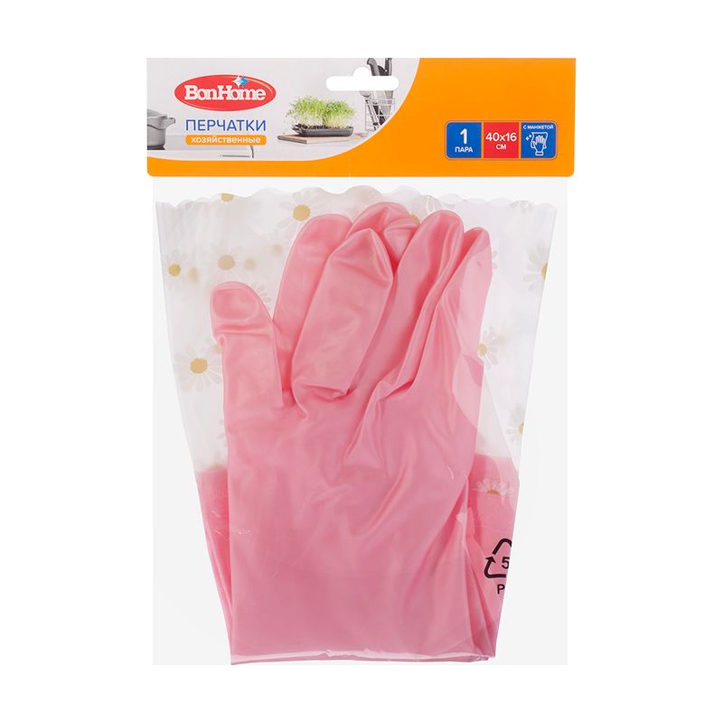 Перчатки хозяйственные с манжетой, BonHome, в ассортименте