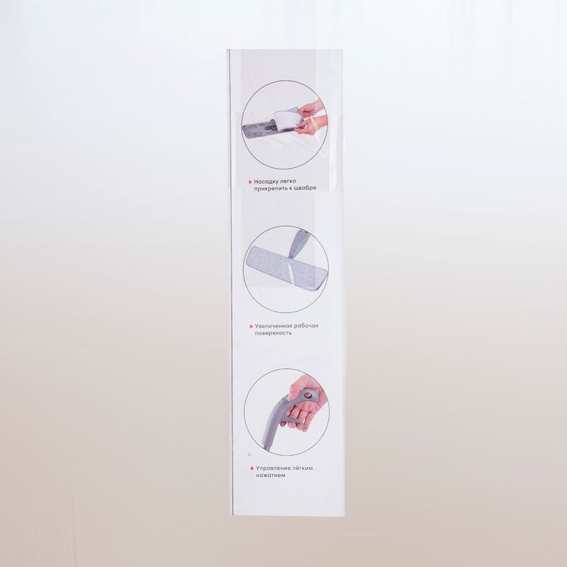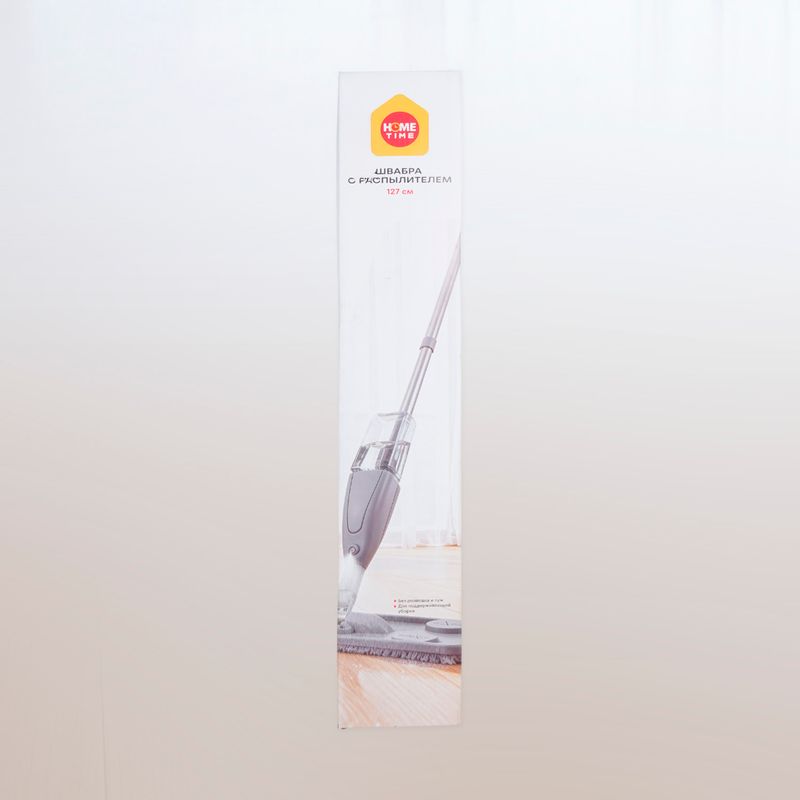 Швабра с распылителем, Home Time — удобное решение для быстрой и эффективной уборки пола. Встроенный резервуар для воды и механизм распыления на ручке позволяют увлажнять поверхность одним нажатием, без использования ведра. Лёгкая конструкция и поворотная насадка помогают легко очищать труднодоступные места. Подходит для различных типов напольных покрытий. Длина: 127 см. Состав: полипропилен, PET, углеродистая сталь, полиэстер.