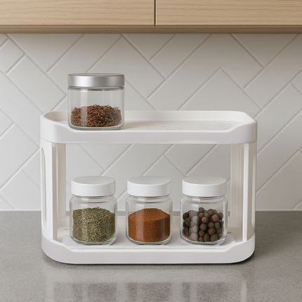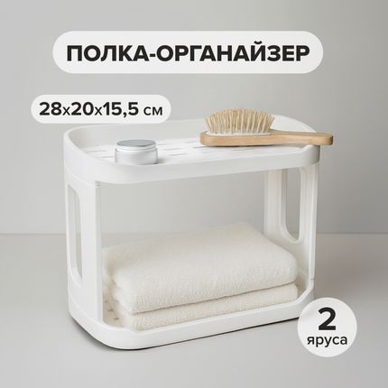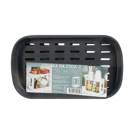 Арт. 5079293Стойка на стол поможет организовать пространство на кухне или в ванной. Двухъярусная. Схема сборки указана на упаковке. Размер: 28х20х15,5 см. Состав: полипропилен.