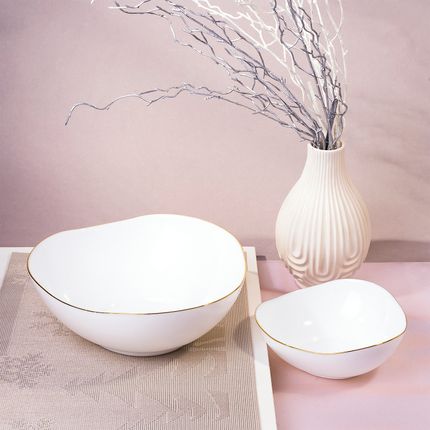 Арт. 5090828Салатник, O’Kitchen, удивит гостей нестандартной формой. Сочетание белого цвета и тонкой золотистой каймы смотрится лаконично и вместе с тем нарядно! Объём: 700 мл. Состав: опаловое стекло. Вы также можете приобрести салатник объёмом 2,3 л (ЛК: 5090829).
