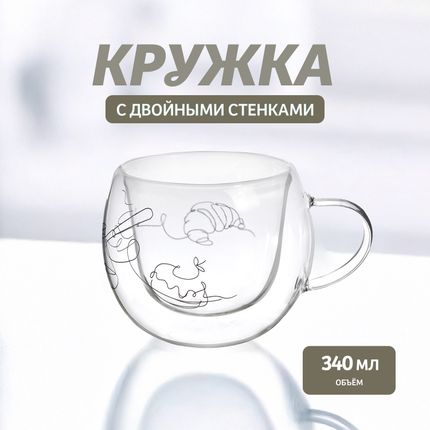 Кружка с двойными стенкам, O’Kitchen, 340 мл, в ассортименте