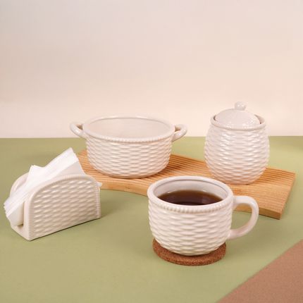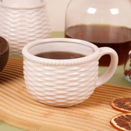 Арт. 5091733Кружка, O`Kitchen, в форме плетёной корзины создаёт атмосферу уюта и отлично подойдёт для утреннего кофе или вечернего чаепития. Объём: 380 мл. Состав: керамика. Нельзя мыть в посудомоечной машине и разогревать в СВЧ-печи. Товар представлен в ассортименте. Вы также можете приобрести сахарницу (ЛК: 5094180), бульонницу с ручками (ЛК: 5094181) и салфетницу (ЛК: 5094182) в едином стиле. Соберите всю коллекцию!