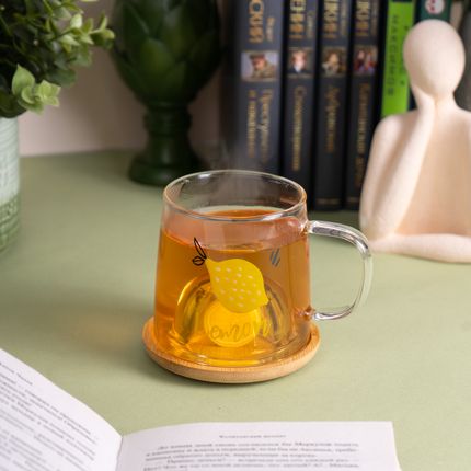 Арт. 5091739Кружка с подставкой, O'Kitchen, в оригинальном дизайне будет радовать Вас каждый день! Подставка с милой фигуркой защитит поверхность стола от нагрева. Также её можно использовать как крышку для кружки. Выдерживает температуру от -20 до +150 °С. Объём: 320 мл. Состав: боросиликатное стекло, бамбук, силикон. Нельзя мыть в посудомоечной машине. После мытья подставку рекомендуется вытирать насухо. Товар представлен в ассортименте.