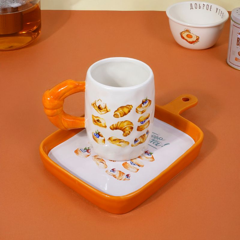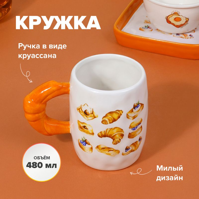 Кружка, O'Kitchen, в милом оформлении прекрасно дополнит Ваш завтрак! Удобная ручка выполнена в форме круассана. Большой объём порадует любителей чая и кофе. Объём: 480 мл. Размер: 8,5х11 см. Состав: керамика. Товар представлен в ассортименте. Вы также можете приобрести удобное блюдо (ЛК: 5091828). Добавьте кухне уюта с коллекцией посуды и аксессуаров "Бабушкины рецепты".