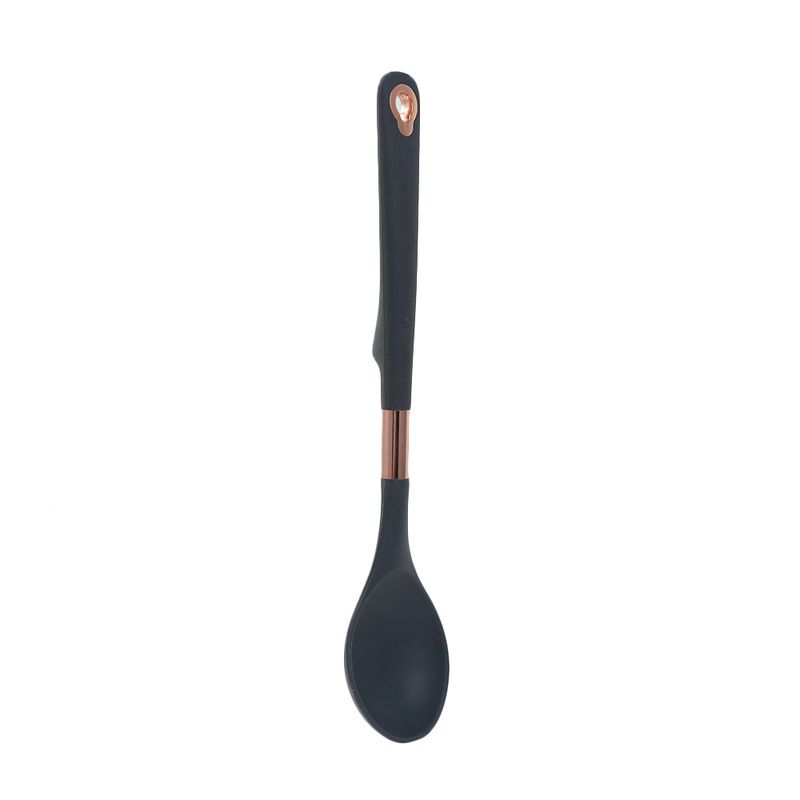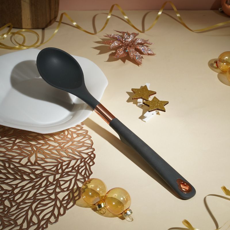 Ложка кухонная, O'Kitchen, пригодится при готовке жаркого, рагу, соусов или салатов. Стильное сочетание чёрного цвета и металлического декора в дизайне. Отверстие для подвешивания. Размер: 33х6,7 см. Состав: силикон, полипропилен, термопластичная резина, нержавеющая сталь, АБС-пластик. Вам также пригодятся другие аксессуары из коллекции Rose gold: половник (ЛК: 5092401), кисточка кулинарная (ЛК: 5092403), лопатка кулинарная (ЛК: 5092404), венчик (ЛК: 5092405).