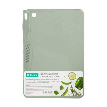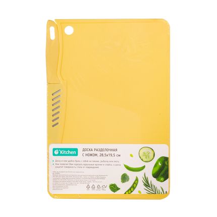 Доска разделочная с ножом, O'Kitchen, 28,5х19,5 см, в ассортименте