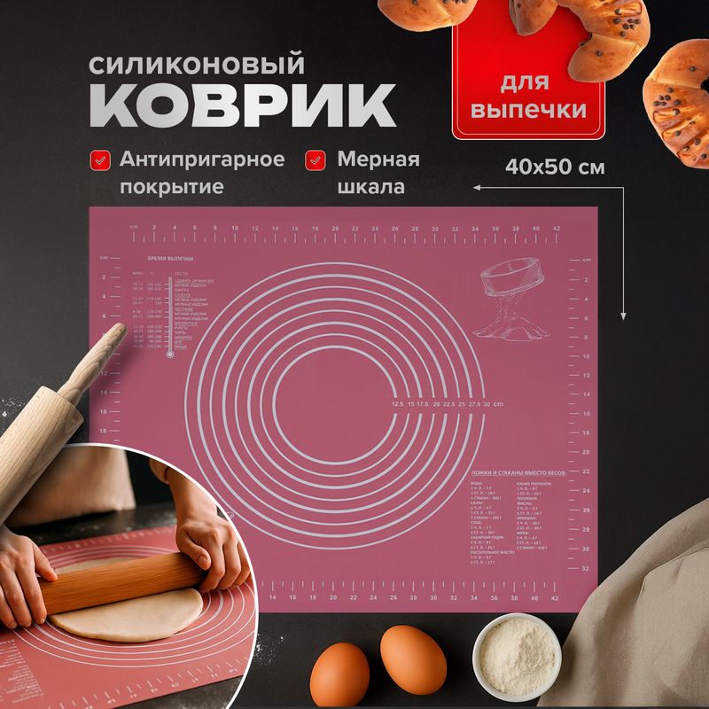 Коврик для выпечки с антипригарным покрытием, O'Kitchen, 40х50 см, в ассортименте
