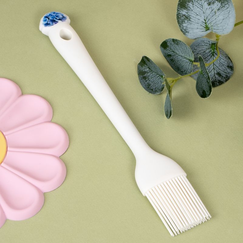 Кисточка кулинарная – отличный выбор для смазывания выпечки, мяса и овощей соусами, маслом или маринадом. Удобная ручка с петелькой позволяет легко хранить аксессуар, а цветочный элемент на наконечнике добавляет кухне весеннего настроения. Длина: 26 см. Состав: силикон, нейлон, полипропилен. Товар представлен в ассортименте. Наполните кухню цветочным настроением с коллекцией посуды "Весенний сад"!