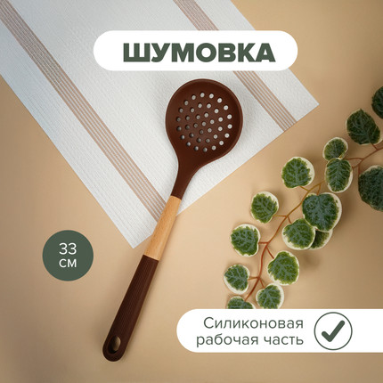 Арт. 5092828Шумовка, O’Kitchen, подойдёт для извлечения продуктов из воды или бульона и для снятия пены при приготовлении. Рабочая часть с отверстиями позволяет жидкости легко стекать. Деревянная ручка обеспечивает удобный захват. Длина: 33 см. Состав: нейлон, силикон, дерево. Не мыть в посудомоечной машине. Товар представлен в ассортименте. Также Вы можете приобрести половник (ЛК: 5092827) и лопатку кухонную (ЛК: 5092829) в похожем дизайне. Эстетика Вашей кухни в коллекции «Минимализм&Уют»!