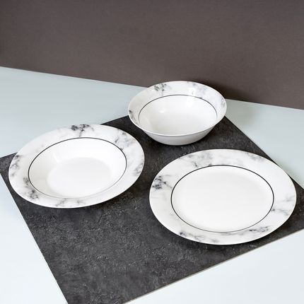 Арт. 5093499Тарелка, O'Kitchen – изысканный элемент сервировки Вашего стола. Декорирована рисунком, имитирующим натуральный камень. Диаметр: 25 см. Состав: опаловое стекло. Товар представлен в ассортименте. Отлично сочетается с другими товарами из коллекции "Минерал": тарелка глубокая (ЛК: 5093500), салатник (ЛК: 5093501). Выберите стильные и удобные предметы для Вашей кухни!