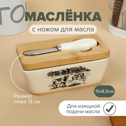 Маслёнка с ножом для масла, O'Kitchen, 15х9 см, в ассортименте