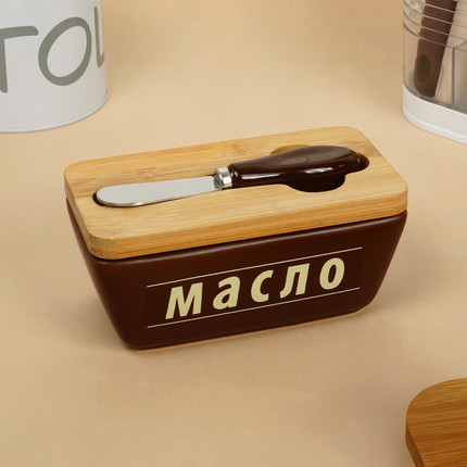 Арт. 5093737Маслёнка с ножом для масла, O'Kitchen – изящный вариант для сервировки масла. Дополнена ножом, который удобно помещается на крышке. Выдерживает температуру от -20 °С до +100 °С. Размеры: маслёнка – 15х9 см, нож – 13х2,5 см. Состав: керамика, бамбук, нержавеющая сталь, полипропилен. Не мыть в посудомоечной машине и не разогревать в микроволновой печи. Товар представлен в ассортименте. Вы также можете приобрести кувшин (ЛК: 5093740), ёмкость для специй (ЛК: 5036412), ёмкость для масла (ЛК: 5036408), банку (ЛК: 5036197), подставку под ложку (ЛК: 5022988), подставку под горячее (ЛК: 5024606).