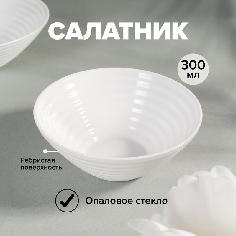 Салатник, O'Kitchen, в лаконичном дизайне – отличный выбор для повседневной сервировки. Имеет ребристую поверхность. Объём: 300 мл. Размер: 12,5х5 см. Состав: опаловое стекло. Вы также можете приобрести другую посуду из этой серии: салатники 430 мл и 1,8 л (ЛК: 5094240, 5094241), тарелки 19 см и 26,5 см (ЛК: 5094242, 5094243).
