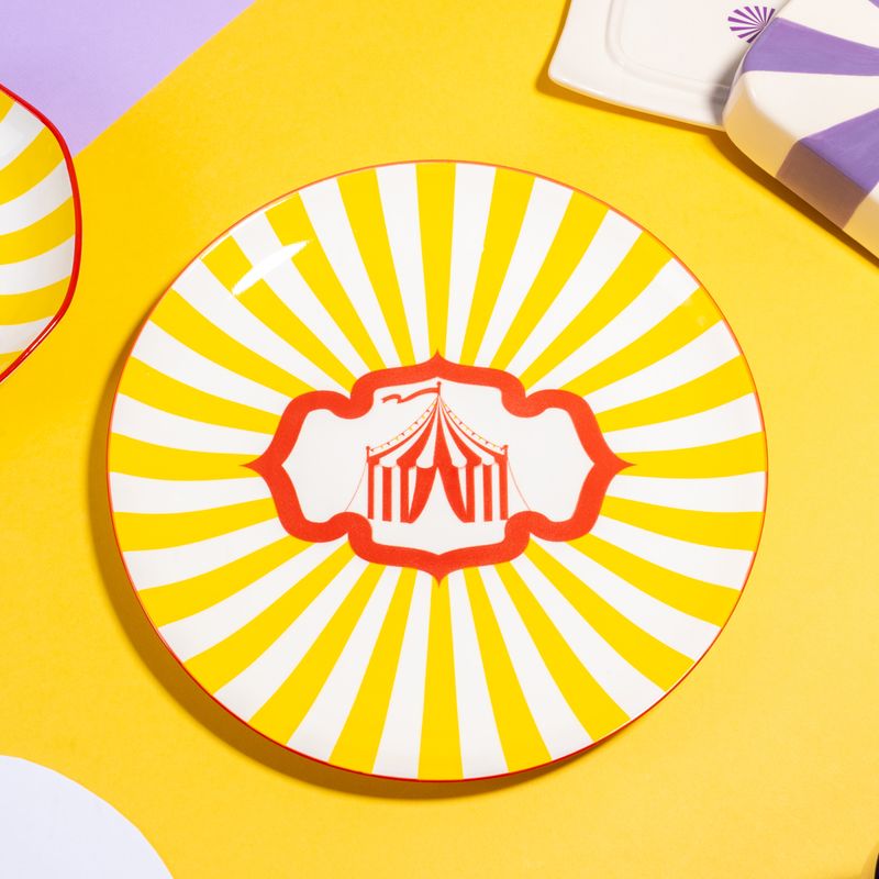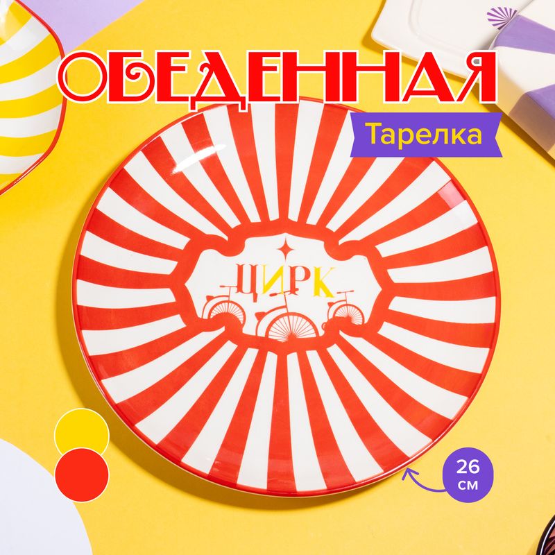 Тарелка обеденная, O’Kitchen, украшена яркими лучами, создающими солнечное настроение. Подойдёт как для повседневной, так и для праздничной сервировки. Диаметр: 26,5 см. Состав: фарфор. Товар представлен в ассортименте. Карнавал ярких красок в коллекции товаров для кухни "Цирк"!