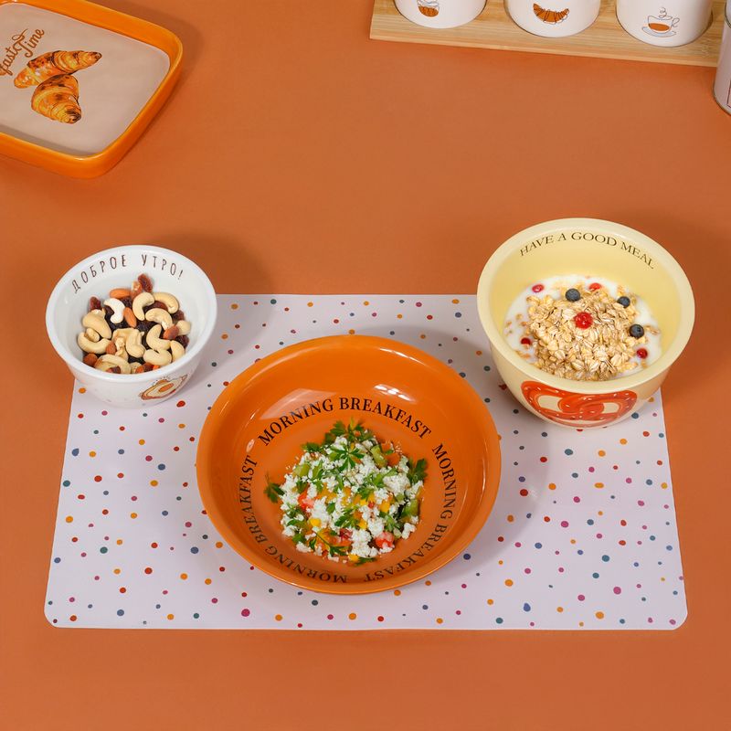 Салатник, O'Kitchen, с милым рисунком и надписью прекрасно подходит для завтраков! Объём: 360 мл. Размер: 12х6 см. Состав: керамика. Товар представлен в ассортименте. Вы также можете приобрести салатник объёмом 840 мл (ЛК: 5094324) и десертную тарелку (ЛК: 5094326) в аналогичном дизайне. Добавьте кухне уюта с коллекцией посуды и аксессуаров "Бабушкины рецепты".