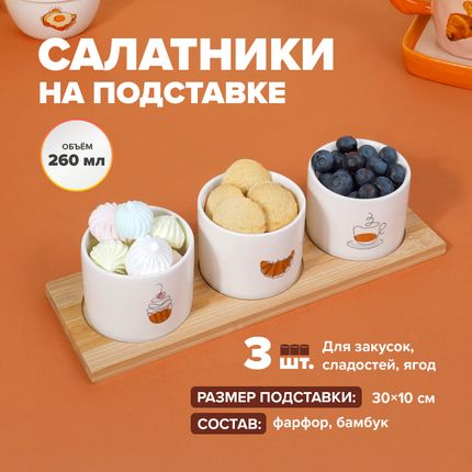 Набор салатников на подставке, O'Kitchen, 260 мл, 3 шт., в ассортименте