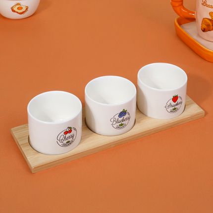 Арт. 5094327Набор салатников на подставке, O'Kitchen – элегантный и удобный вариант сервировки закусок, сладостей, ягод и сухофруктов. Гармонично дополнит интерьер. В наборе 3 салатника и 1 подставка. Объём салатника: 260 мл. Размер подставки: 30х10 см. Состав: фарфор, бамбук. Нельзя мыть в посудомоечной машине. Товар представлен в ассортименте. Добавьте кухне уюта с коллекцией посуды и аксессуаров "Бабушкины рецепты".