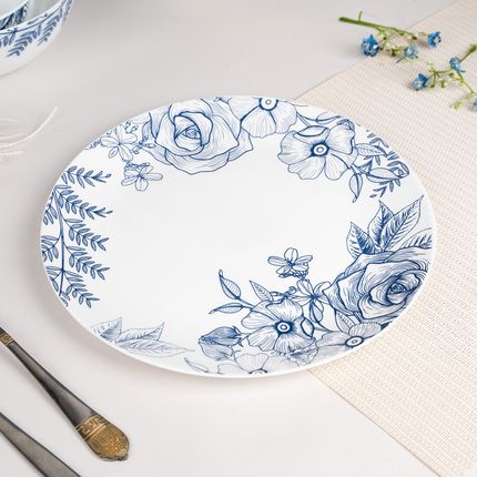 Арт. 5094340Тарелка обеденная украшена изысканным цветочным рисунком в синих тонах. Отличный вариант для подачи вторых блюд. Диаметр: 26,5 см. Состав: опаловое стекло. Товар представлен в ассортименте. Вы также можете приобрести салатники объёмом 750 мл (ЛК: 5094338) и 250 мл (ЛК: 5094338) в похожем дизайне.
