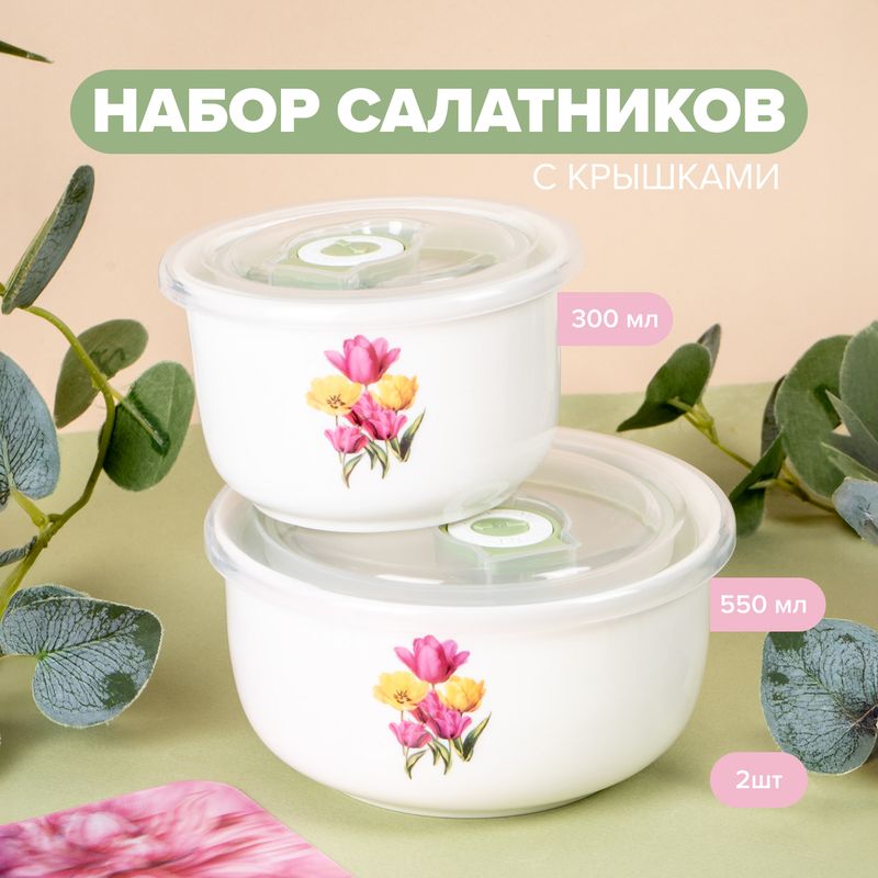 Набор салатников с крышками, O’Kitchen, 2 шт., в ассортименте