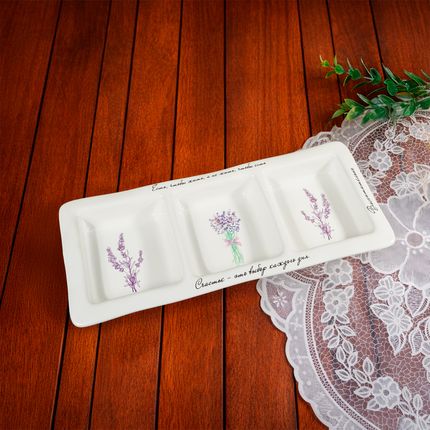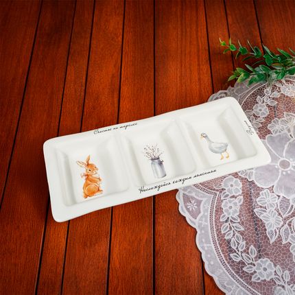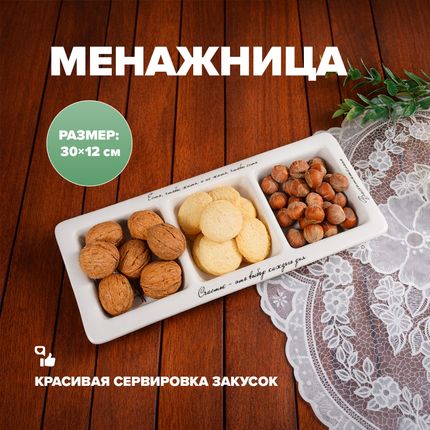 Арт. 5094378Менажница, O'Kitchen, подойдёт для сервировки закусок, сладостей и фруктов. Секции помогут аккуратно разделить угощения, а декоративные рисунки добавят весеннего настроения. Размеры: 30х12х3 см. Состав: керамика. Товар представлен в ассортименте. Тепло свежей выпечки и краски весны в коллекции товаров для кухни «Аромат дома»!