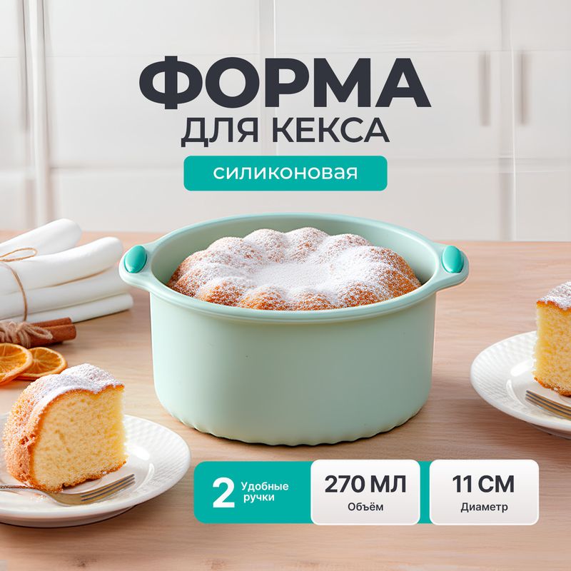 Форма для кекса, O'Kitchen, из силикона отлично подойдёт для приготовления вкусной выпечки! Ребристая поверхность позволяет легко извлечь готовый кекс из формы. Имеет две удобные ручки. Размер: 11х9,7х4,5 см. Объём: 270 мл. Товар представлен в ассортименте. Вы также можете приобрести другие товары для кухни: кружки (ЛК: 5024574, 5091719), сервировочная доска (ЛК: 5024808), кружка-термос (ЛК: 5036596), форма для приготовления яиц пашот в СВЧ (ЛК: 5092656), бутылка для заваривания чая (ЛК: 5092718), поднос (ЛК: 5024574), турка (ЛК: 5093014).