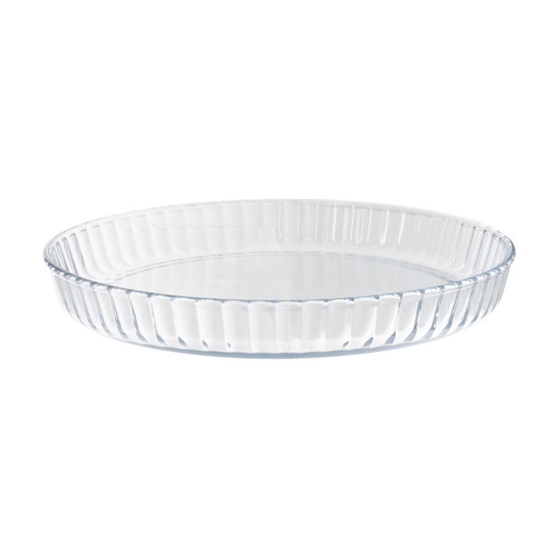 Форма для выпечки, O’kitchen, подходит для приготовления и красивой подачи пирогов, лазаньи и слоёных салатов. Можно использовать в газовой и электрической духовке. Выдерживает температуру от -20 °C до +300 °C. Диаметр: 27,5 см. Состав: боросиликатное стекло.