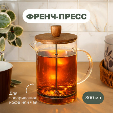 Арт. 5095100Френч-пресс – удобный способ заваривания ароматного кофе или чая. Колба из боросиликатного стекла устойчива к высоким температурам, а прочный пресс-фильтр из нержавеющей стали помогает получить насыщенный и чистый вкус напитка. Деревянные элементы придают изделию тёплый и стильный вид. Объём: 800 мл. Состав: боросиликатное стекло, дерево, нержавеющая сталь. Эстетика Вашей кухни в коллекции «Минимализм&Уют»!