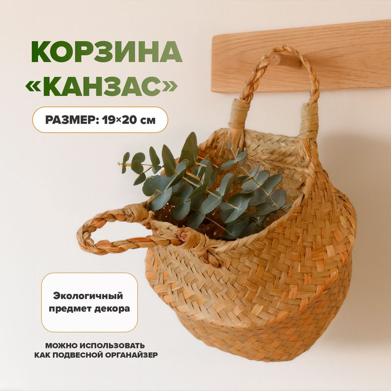 Корзина "Канзас" с удобными ручками станет украшением Вашего интерьера. Может использоваться как ваза, кашпо или подвесной органайзер для хранения мелочей. Размер: 19х20 см. Состав: высушенный ситник.