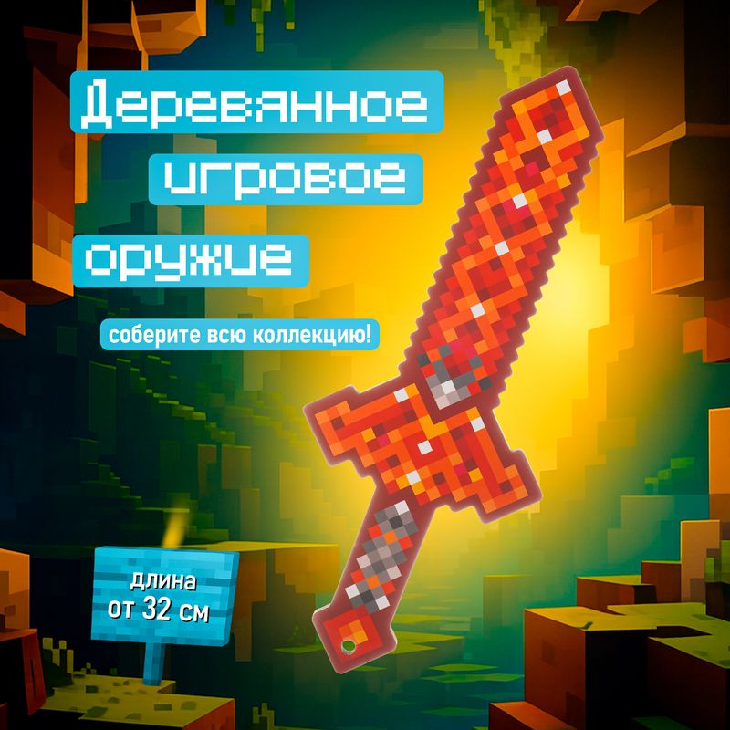 Игрушка "Деревянное игровое оружие", PREZENT, удивляет ярким дизайном с пиксельным узором! Размер зависит от выбранного оружия: топор – 16х37 см, меч – 15х37 см, кирка – 22х32 см. Состав: фанера (берёза), картон, ламинация. Для детей от 3 лет. Товар представлен в ассортименте. Соберите всю коллекцию!