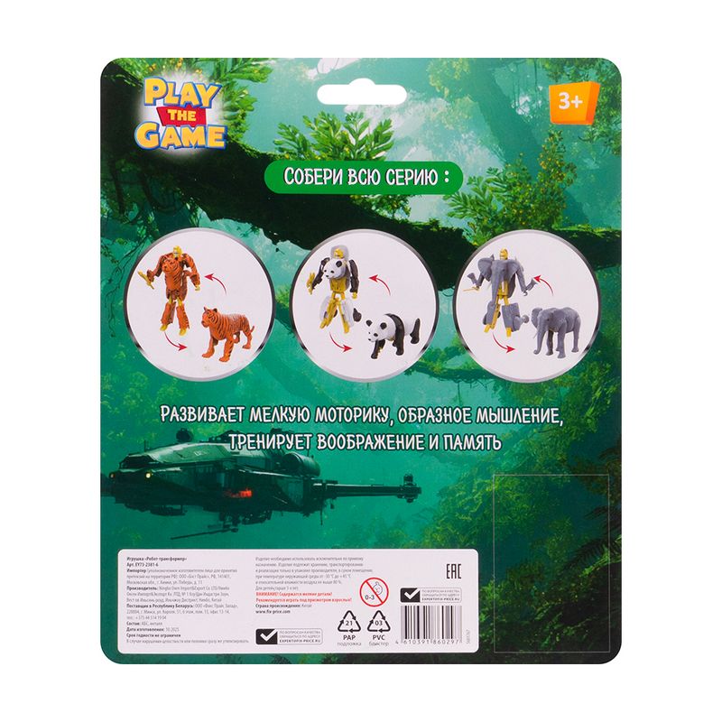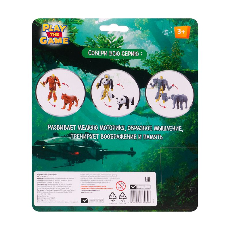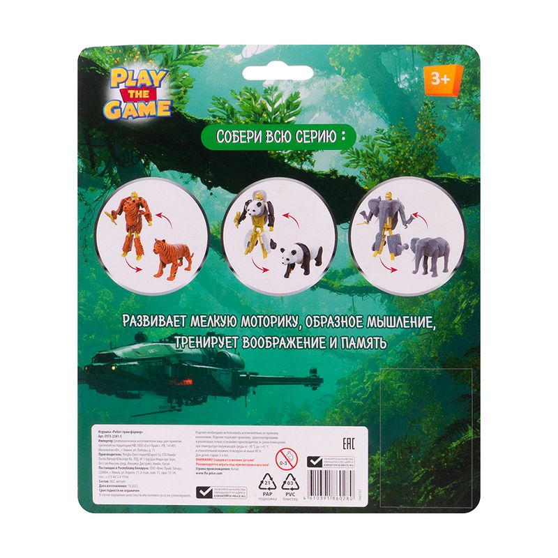 Игрушка "Робот-трансформер", Play the Game, превращает животное в настоящего робота. Развивает мелкую моторику рук, образное мышление, тренирует воображение и память. Для детей от 3 лет. Состав: АБС, металл. Товар представлен в ассортименте.