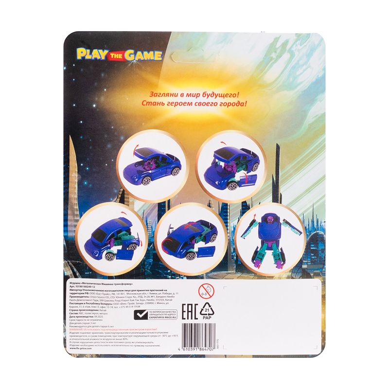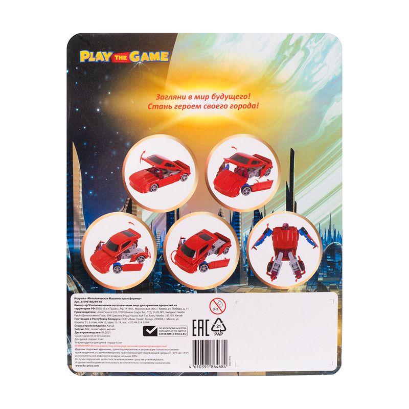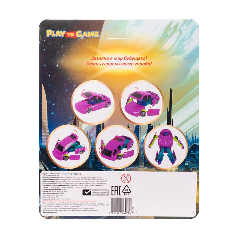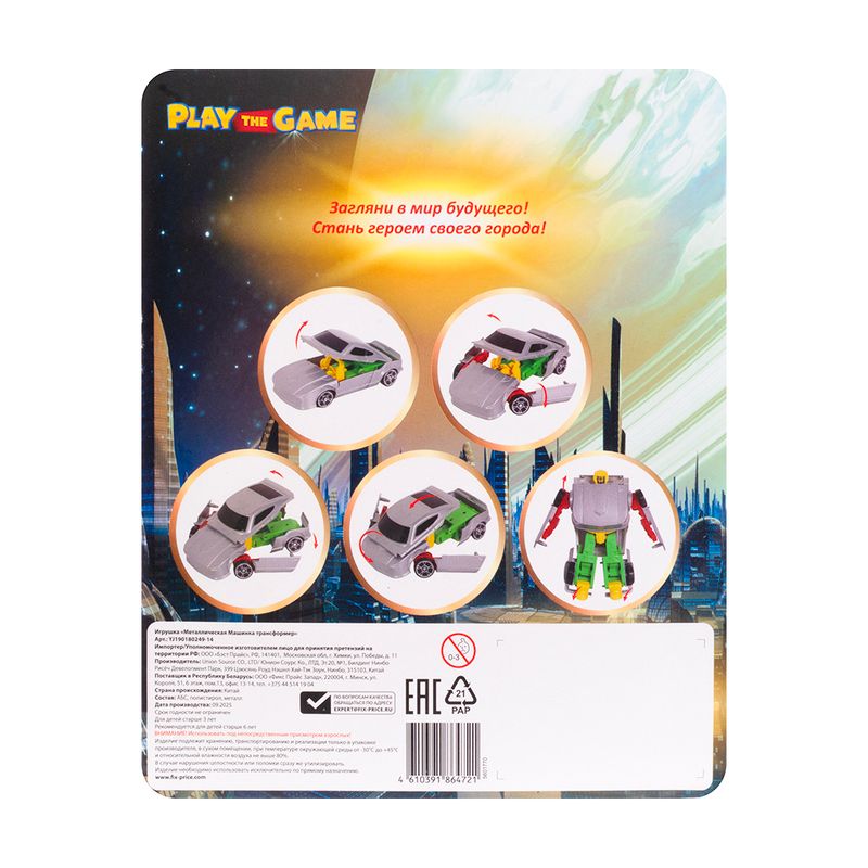Игрушка "Металлическая Машинка трансформер", Play the Game, объединяет сразу два формата игры. Управляйте быстрой машиной, а потом превращайте его в мощного робота! Игрушка отлично тренирует воображение, память и образное мышление. Для детей от 6 лет. Состав: АБС, полистирол, металл. Товар представлен в ассортименте.