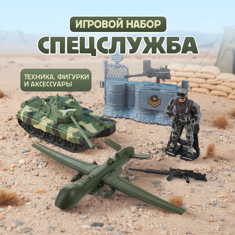 Игровой набор "Спецслужба", Play the Game, создан для увлекательных сюжетных игр. Техника, фигурки и аксессуары помогут придумать множество захватывающих сценариев. Игра развивает воображение и сюжетное мышление. Для детей от 6 лет. Содержатся мелкие детали! Использовать под непосредственным присмотром взрослых! Состав: полипропилен, металл, ПВХ. Товар представлен в ассортименте.