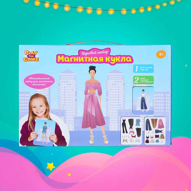 Игровой набор "Магнитная кукла", Play the Game — увлекательное занятие для детей, которое развивает фантазию и мелкую моторику. В комплект входят кукла и набор магнитных элементов одежды и аксессуаров, которые можно легко менять, создавая новые образы. Ребёнок сможет придумать собственные наряды и истории, сочетая разные детали. Для детей от 3 лет. Товар представлен в ассортименте.