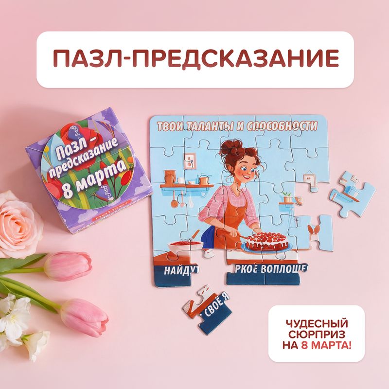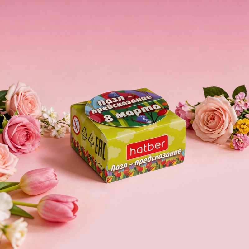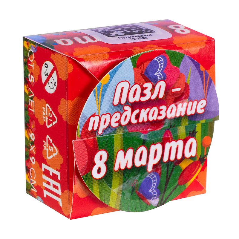 Пазл-предсказание "8 марта" станет чудесным сюрпризом в честь весеннего праздника! Внутри красочной коробочки находятся 25 элементов, из которых складывается картинка с пожеланием. Для детей от 5 лет. Размер собранного пазла: 9х9 см. Состав: картон, бумага. Товар представлен в ассортименте.