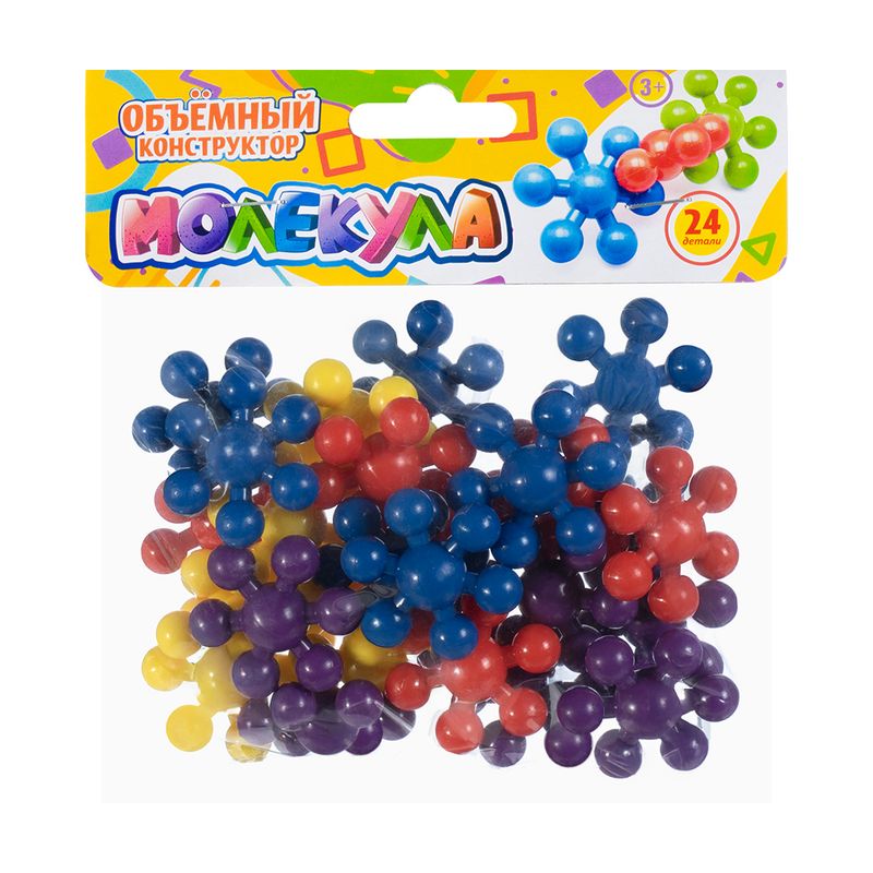 Объёмный конструктор "Молекула" позволяет ребёнку создавать оригинальные композиции из 24 деталей. Развивает пространственное мышление и воображение. Для детей от 3 лет. Состав: полипропилен. Товар представлен в ассортименте.